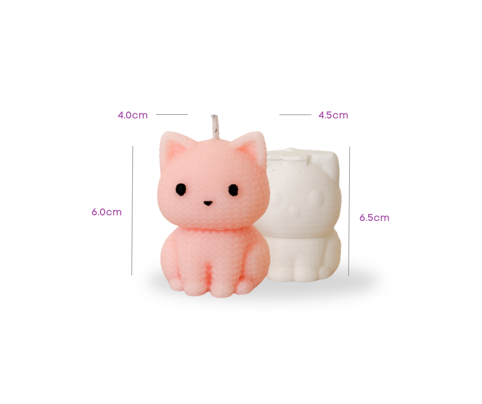 Crea velas irresistiblemente tiernas con este hermoso molde de gatito estilo croché. Su textura tipo tejido en relieve le da un acabado artesanal, delicado y moderno que está en súper tendencia.