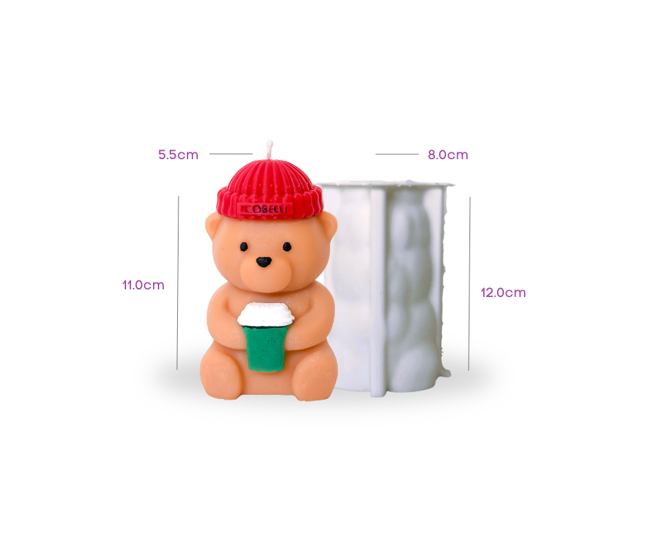 Crea velas irresistiblemente tiernas con este hermoso molde de oso con gorro tejido y vasito estilo café. Un diseño acogedor, moderno y perfecto para colecciones de otoño–invierno o ediciones especiales.